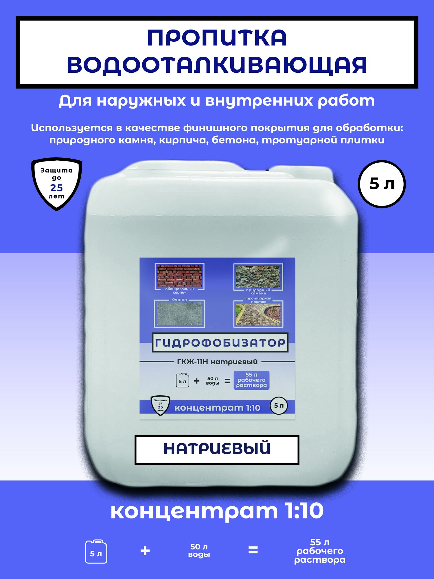 Назначение: Жидкости ГКЖ-10 БСП и ГКЖ-11 БСП предназначены для придания гидрофобных (водоотталкивающих) свойств строительным материалам, таким как бетон, газобетон, железобетонные изделия и штукатурка, а также для модификации буровых растворов. Справочно: В ассортименте представлен более концентрированный аналог — гидрофобизатор ГКЖ-9А.